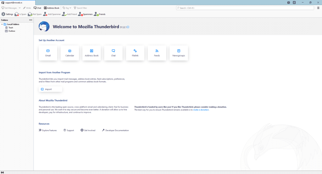 Sada želim da zajedno prativši moja uputstva uradiš isto i na računaru, odnosno laptopu, Mac-u, Linux-u, ili nečemu četvrtom. Koristićemo aplikaciju koja se naziva Mozilla Thunderbird. To je open-source aplikacija koja radi na različitim operativnim sistemima kao što su Windows, macOS, Ubuntu, i drugi Linux-oliki sistemi.